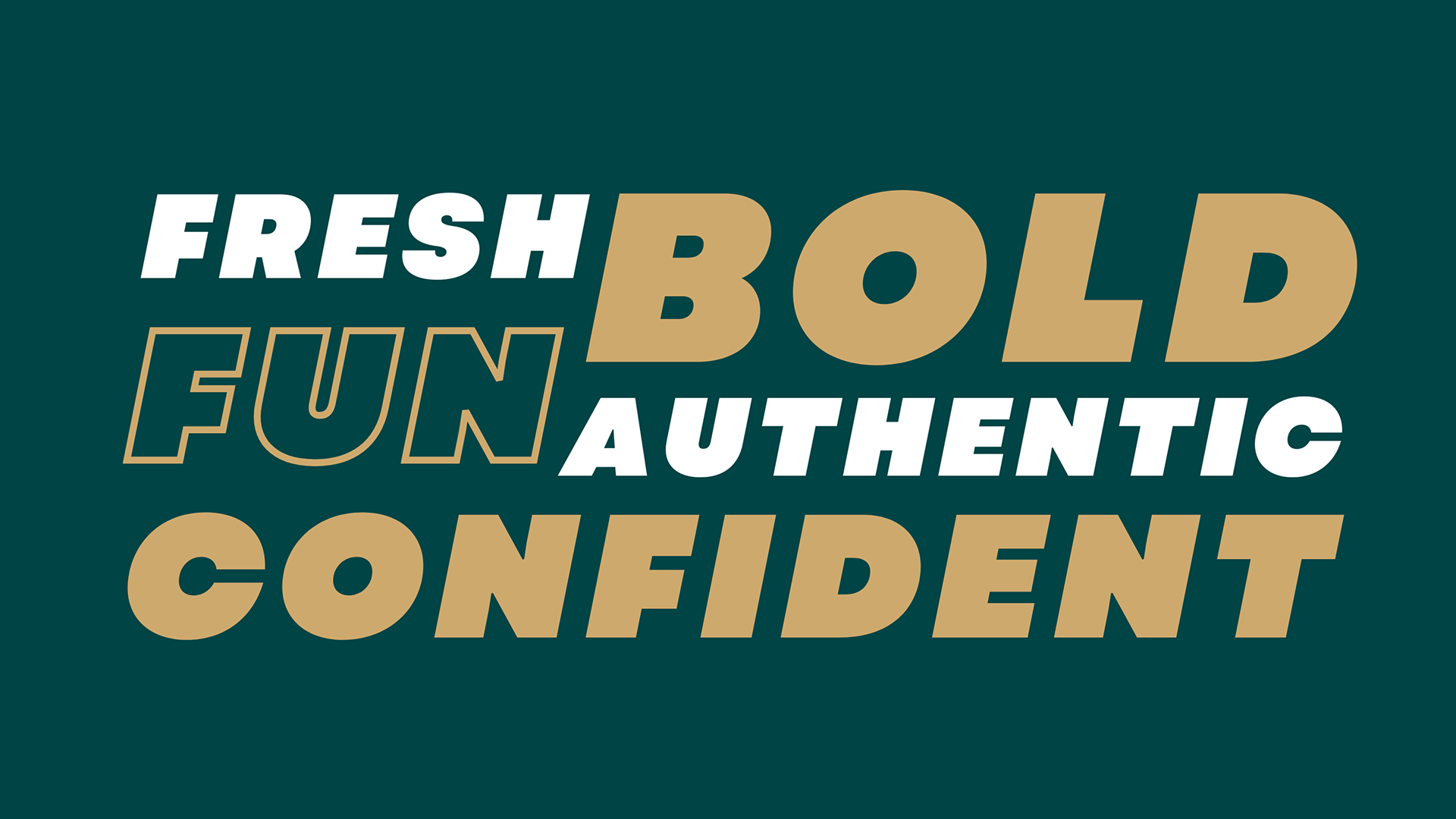 The bold and fresh logo featuring a powerful typography layout in deep emerald green, gold, and white to match their brand perfectly – confident, fun, and ready to help others become amazing communicators.